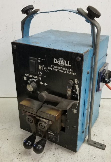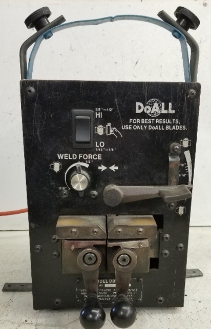 Home / Other Machines / Welders / Bandsaw Blade Welder, Doall DBW-10 Item #H2533 Bandsaw Blade Welder, Doall DBW-10 Item #H2533$349.00 1 in stock Add to cart SKU: H2533 Categories: Cutting, Welders Description Description DoAll Bandsaw Blade Welder, 1/16″-1/2″, 1 Phase 115/230 Volts, DBW-10 Related products Bandsaw Blade Delta Welder $295.00 Add to cart Wells W-9 Bandsaw 9″ x 18″ $1,995.00 Add to cart Welder, Craftsman, AC/DC 230/180 Amp, Model No. 934.20177 $195.00 Add to cart Bandsaw Blade Welder, Stryco $395.00 Add to cart