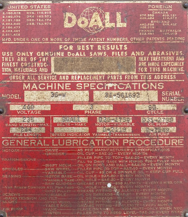 Home / Cutting / Vertical Bandsaws / DoAll 36″ Vertical Bandsaw DoAll 36″ Vertical Bandsaw$1,495.00 DoAll 36" Vertical Bandsaw quantity Add to cart SKU: H11026 Categories: Cutting, Vertical Bandsaws Description Reviews (0) Description Doall 36″ Vertical Bandsaw, Model 36W, 10 HP 3 Phase 220/440 Volts Reviews There are no reviews yet. Be the first to review “DoAll 36″ Vertical Bandsaw” Cancel replyYour email address will not be published. Required fields are marked *Your rating * Rate… Perfect Good Average Not that bad Very poor Your review *Name * Email * Save my name, email, and website in this browser for the next time I comment. Related products Adjustable Roller Stand $29.00 Add to cart Delta 10″ Chop Saw $249.00 Add to cart Bandsaw Blade Welder, Doall DBW-10 Item #H2533 $349.00 Add to cart Bandsaw Blade Welder, Stryco $395.00 Add to cart