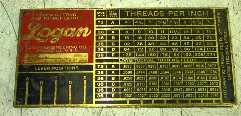 Home / Turning / Lathe Parts / Logan Lathe Quick Change Gear Box Thread Chart, NOS Logan Lathe Quick Change Gear Box Thread Chart, NOS$20.00 3 in stock Logan Lathe Quick Change Gear Box Thread Chart, NOS quantity Add to cart Category: Lathe Parts Description Description Logan Lathe Quick Change Gear Box Thread Chart, No Model Stamped, NOS, Several Available, $20 ea. Related products Atlas Lathe Threading Dial Gear 9-44(NOS) $50.00 Add to cart South Bend 9″/10K Metal Lathe Saddle Clamp New, BE50 9SC $29.00 Add to cart Lodge & Shipley 14″ Metal Lathe Saddle clamp $49.00 Add to cart South Bend 9″ Lathe Half Nuts, Used but have some life left $75.00 Add to cart