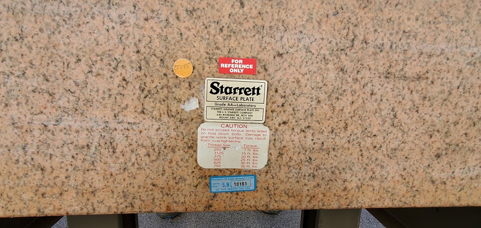 Starrett AA Labratory Grade Pink Granite Surface Plate on Stand, 37-1/2 x 54″ x 10″ Thick, 2,100 Pounds